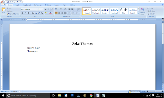 Here, we must leave my Zeke Thomas example, because this is as far as I've currently developed him. As I continue to write Journey of Choice, and if Zeke continues to show up in the scenes, then his document will grow. And as I continue to write, I have something to go back to, to glance at, to keep me consistent.